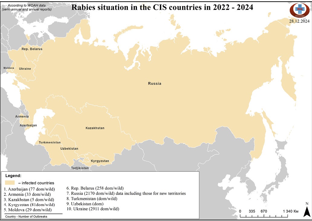 Fig. 3. Rabies situation in the CIS members as of December 28, 2024
